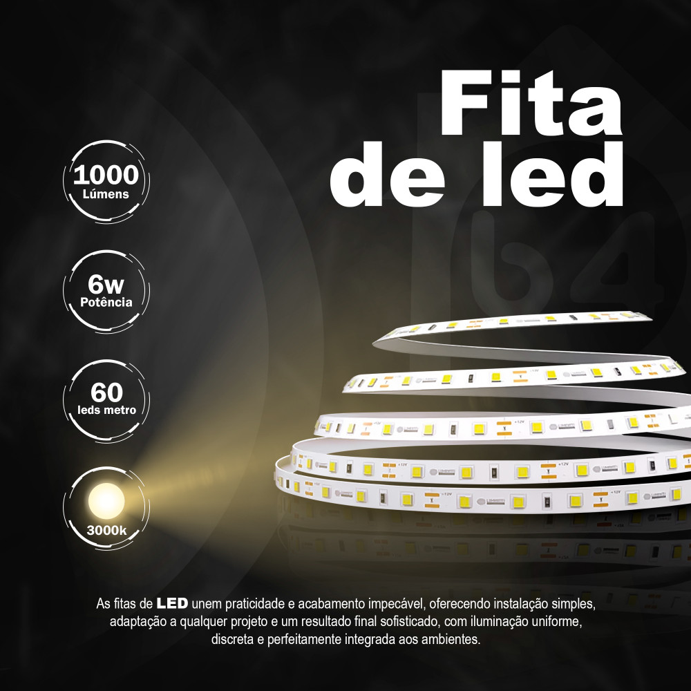Fita 60 Leds 24v IP68 12w 10mm 1000Lu 3000k R 5 m
