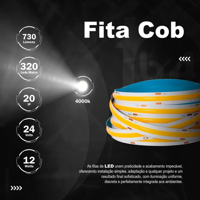 FITA 320 LEDS COB 24V IP20 12W 730Lu 5 MM 4000K R 10M (OW)