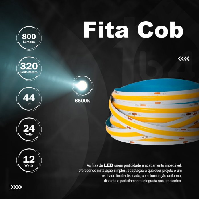 FITA 320 LEDS COB 24V IP44 12W 800Lu 8MM 6500K R 10M