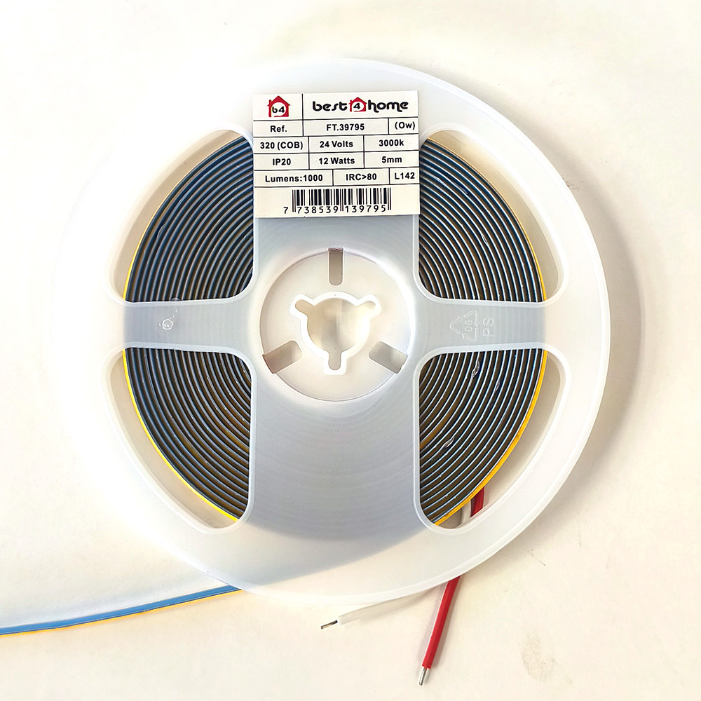 Fita COB 320 Leds 24v IP20 10w 1000Lu 5mm 3000K 5m (Ow)