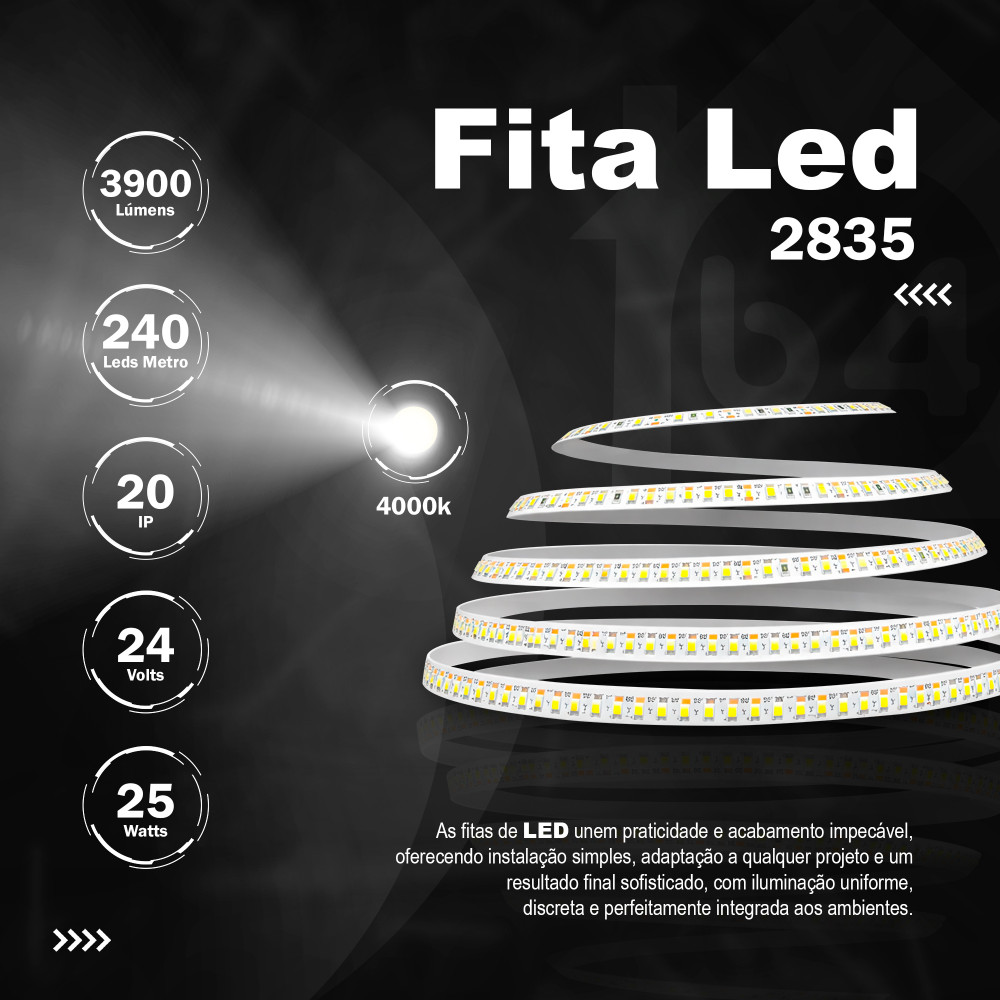 Fita 240 Leds IP20 10mm 4000k<br>24v 25w 3900Lu R 5m.