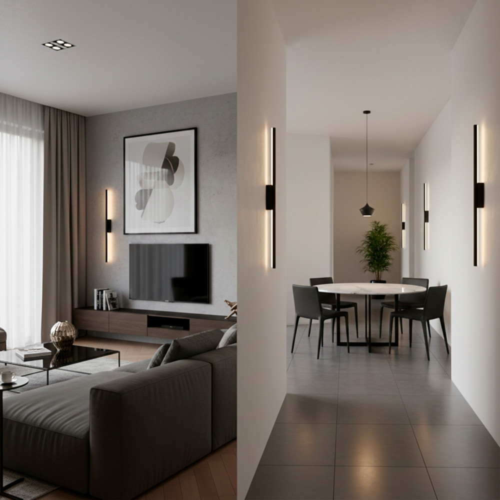 | Tensão: 220V | Proteção: IP65 | Fonte de luz: Fita 2835 | Cor: Preto | Aplicação: Interno / Externo |