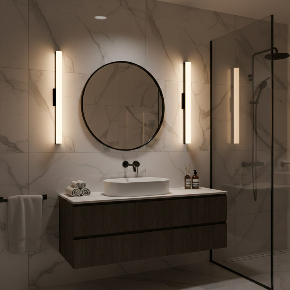 | Tensão: 220V | Proteção: IP65 | Fonte de luz: Fita 2835 | Cor: Preto | Aplicação: Interno / Externo |