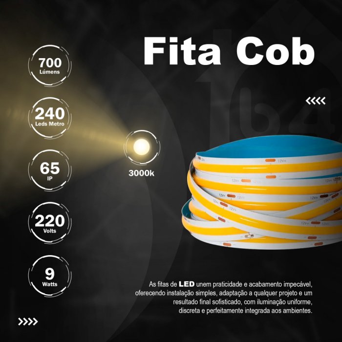 FITA 240 LEDS FCOB 220V IP65 9W 11MM 700LU 3000K - METRO (OW)