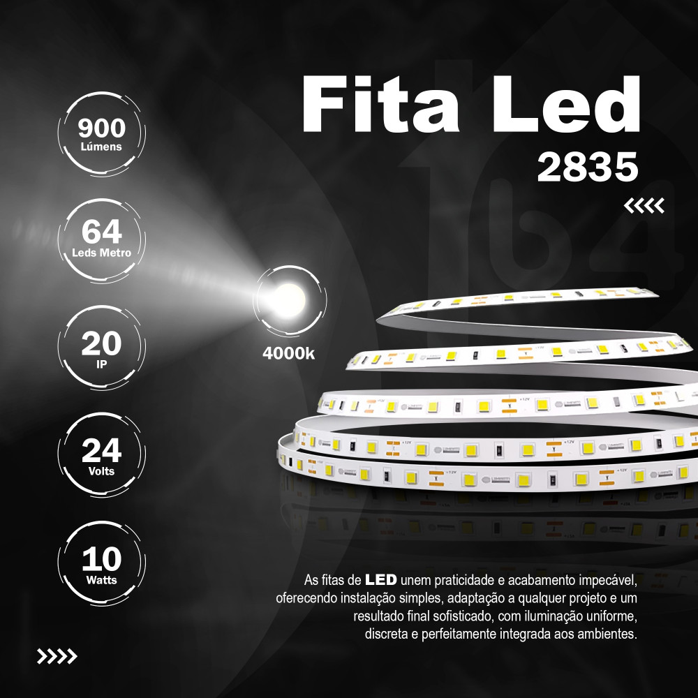 Fita 64 Leds 24V IP20 10w 8mm 900Lu 4000K R 5M.