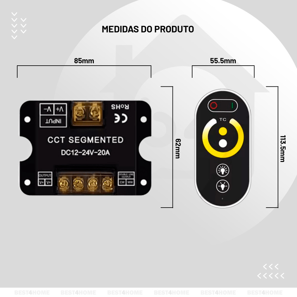 Controladora/Dimerizador 3 cores WW+W c/ Controle