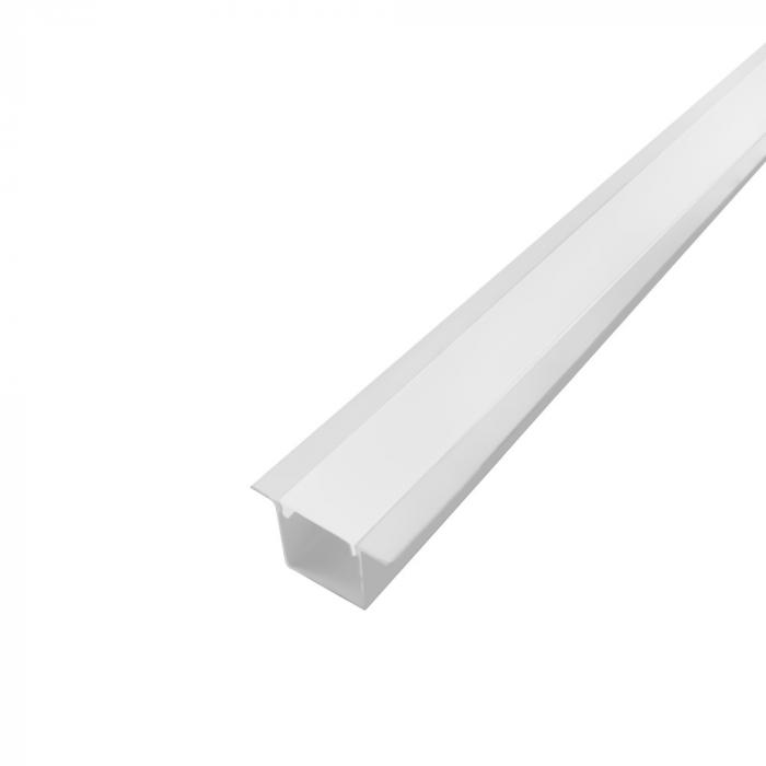 Perfil de embutir em Alumínio próprio para arquitetura 6063. Acabamento de alta qualidade com pintura resistente, com ótima dissipação térmica e difusor que evita aparecimento de pontos do led, desde que usado com a fita apropriada para sua altura.