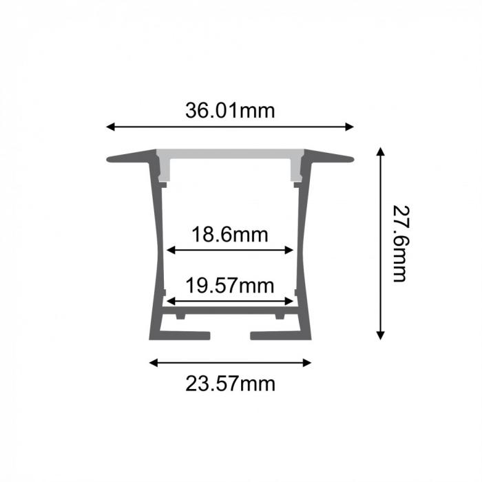 Perfil de embutir em Alumínio próprio para arquitetura 6063. Acabamento de alta qualidade com pintura resistente, com ótima dissipação térmica e difusor que evita aparecimento de pontos do led, desde que usado com a fita apropriada para sua altura.