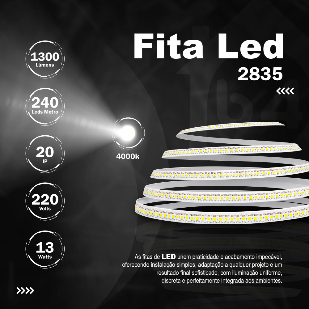 Fita 240 Leds 220v IP20 11w 11mm 1500Lu 4000k - METRO