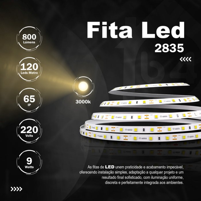 FITA 120 LEDS 220V IP65 9W 10MM 800LU 3000K - METRO